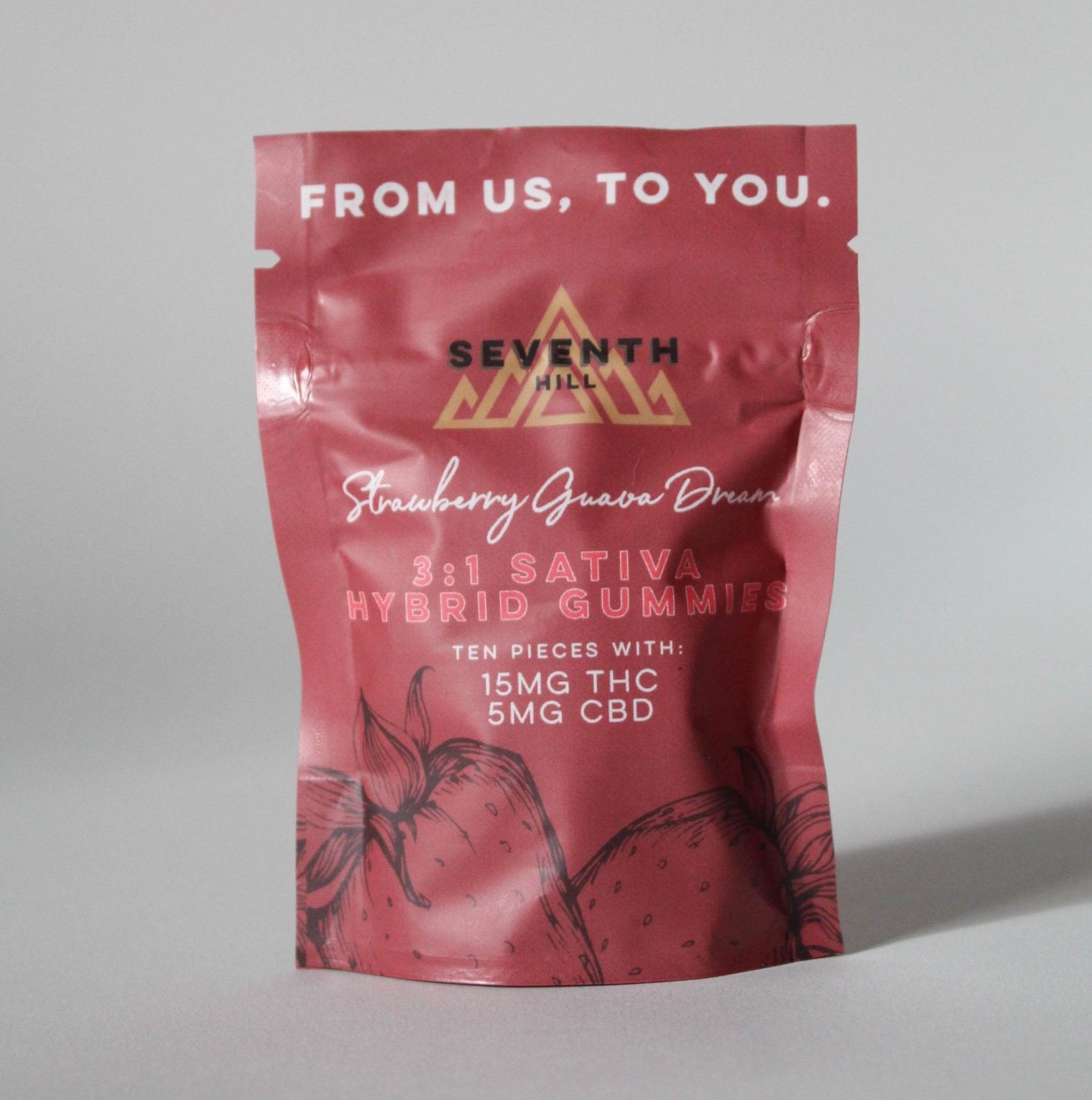 Seventh Hill’s Sativa Hybrid Gummies are naturally fruity, vegan friendly and potent AF. Each pack comes with ten pieces of Strawberry Guava flavored gummies with 15mg THC, 5mg CBD, plus a sativa-hybrid terpene profile inspired by Blue Dream.