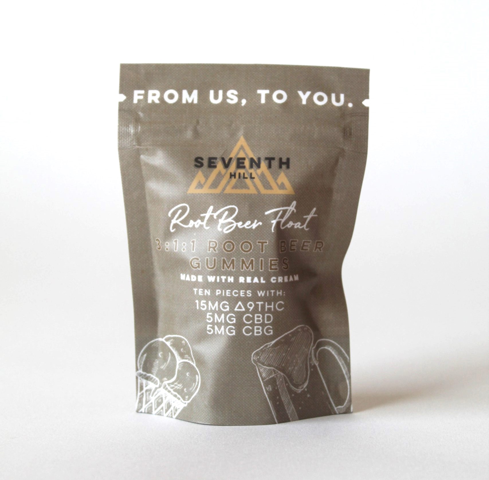 Seventh Hill’s 3:1:1 Root Beer Gummies are inspired by the Soda Pop gummies you knew growing up but with an adult twist! Each pack comes with ten pieces of Root Beer Float flavored gummies with 15mg THC, 5mg CBD, 5mg CBG plus a dash of real cream.